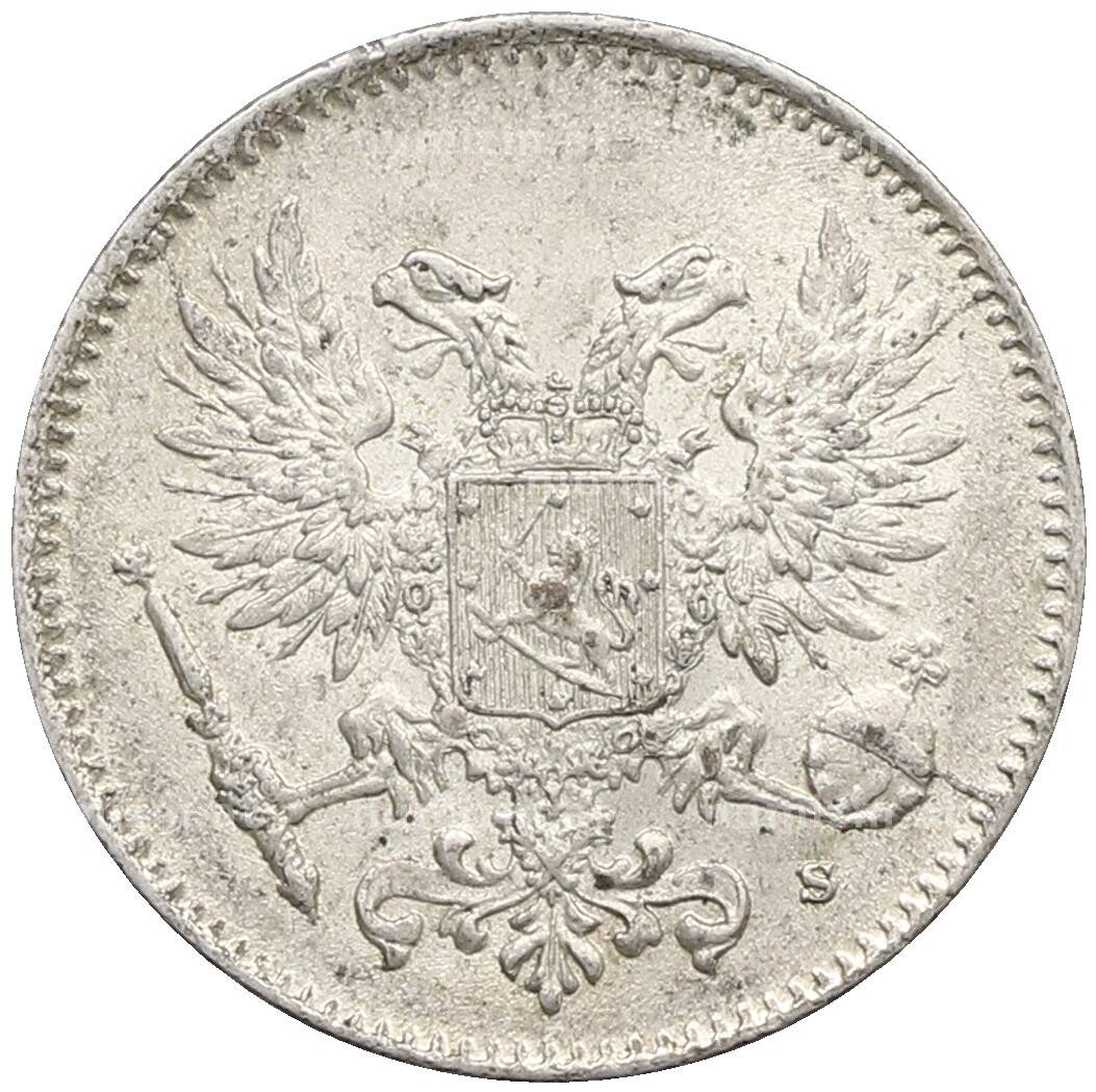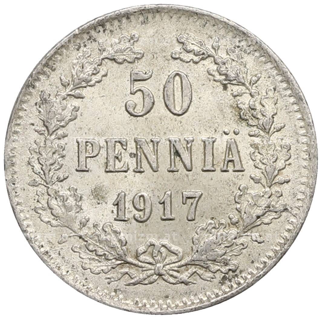 Монета 50 пенни 1917 года Русская Финляндия — Орел без корон (Временное правительство) [Артикул: K10-2655]