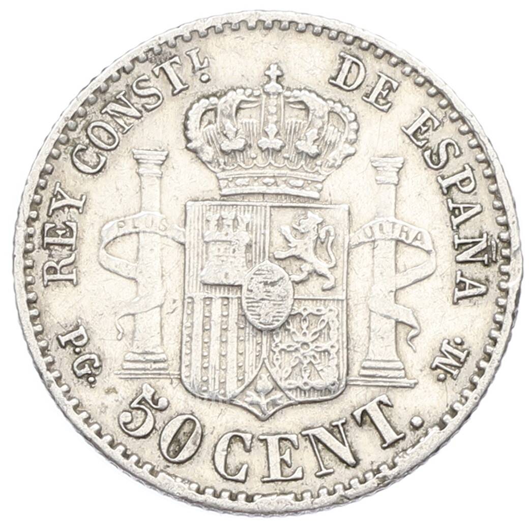 Монета 50 сентимо 1892 года Испания (Артикул: K10-2676): подробные характеристики, качественные фотографии в высоком разрешении, низкая цена.