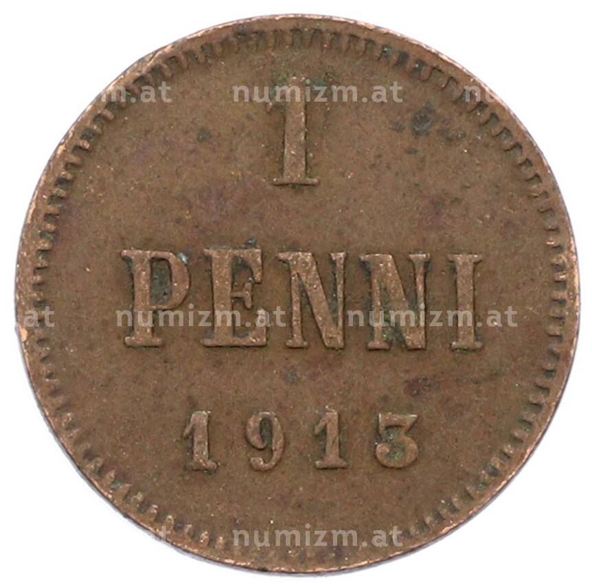Монета 1 пенни 1913 года Русская Финляндия (Артикул: K10-2984): подробные характеристики, качественные фотографии в высоком разрешении, низкая цена.