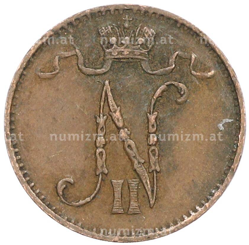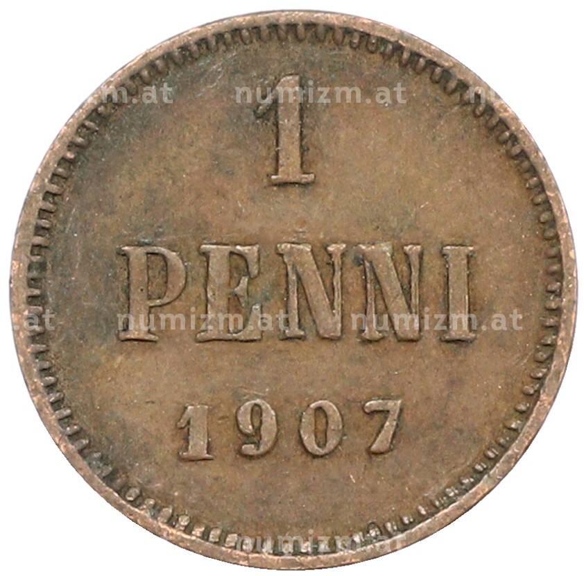 Монета 1 пенни 1907 года Русская Финляндия (Артикул: K10-3050): подробные характеристики, качественные фотографии в высоком разрешении, низкая цена.