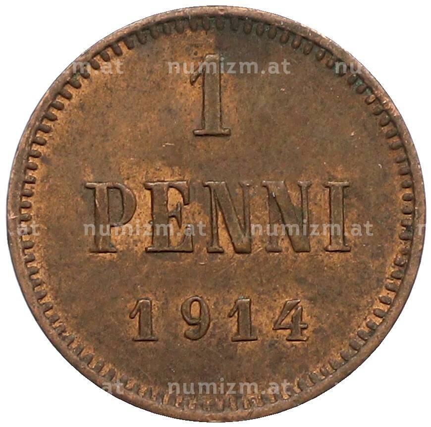 Монета 1 пенни 1914 года Русская Финляндия (Артикул: K10-3311): подробные характеристики, качественные фотографии в высоком разрешении, низкая цена.