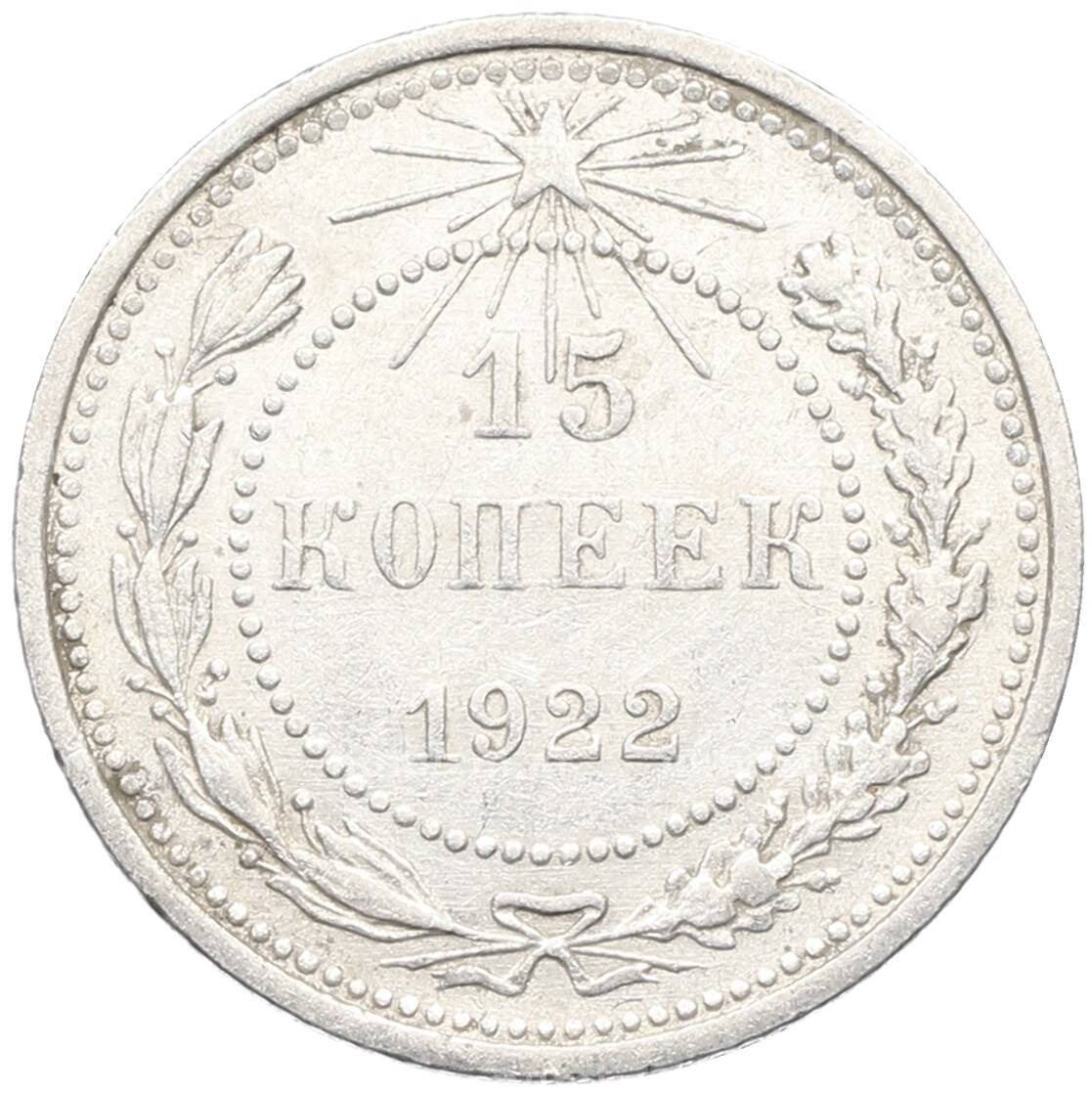 • Монета 15 копеек 1922 года (Артикул: K10-3355) — Фото №1 Монета 15 копеек 1922 года (Артикул: K10-3355) — Фото №2