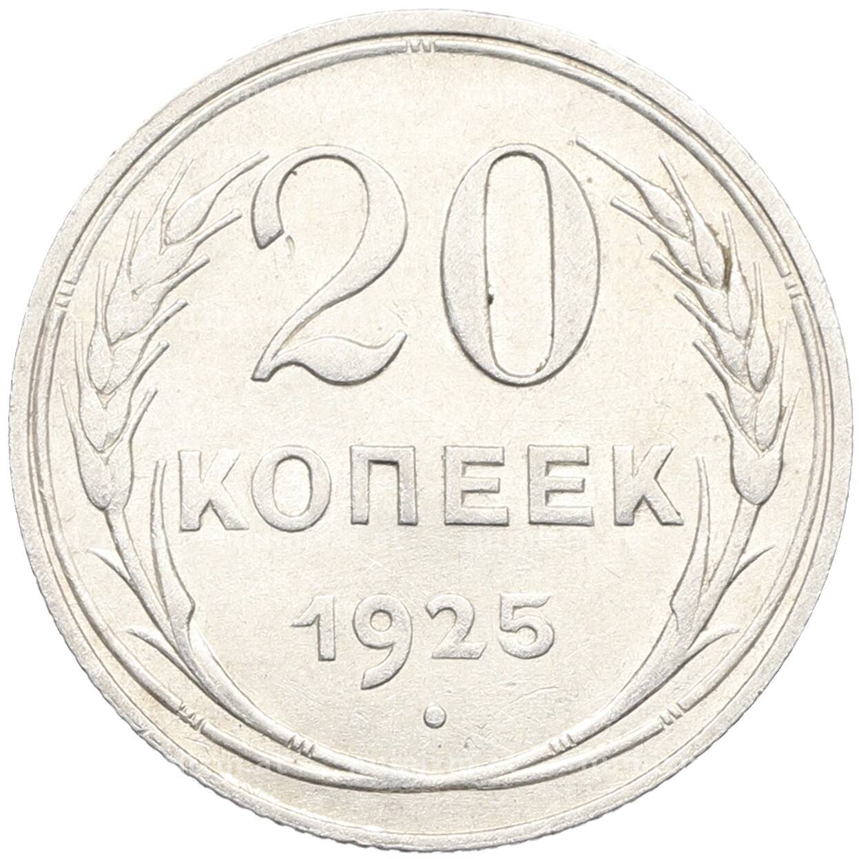 Монета 20 копеек 1925 года (Артикул: K10-3497): подробные характеристики, качественные фотографии в высоком разрешении, низкая цена.