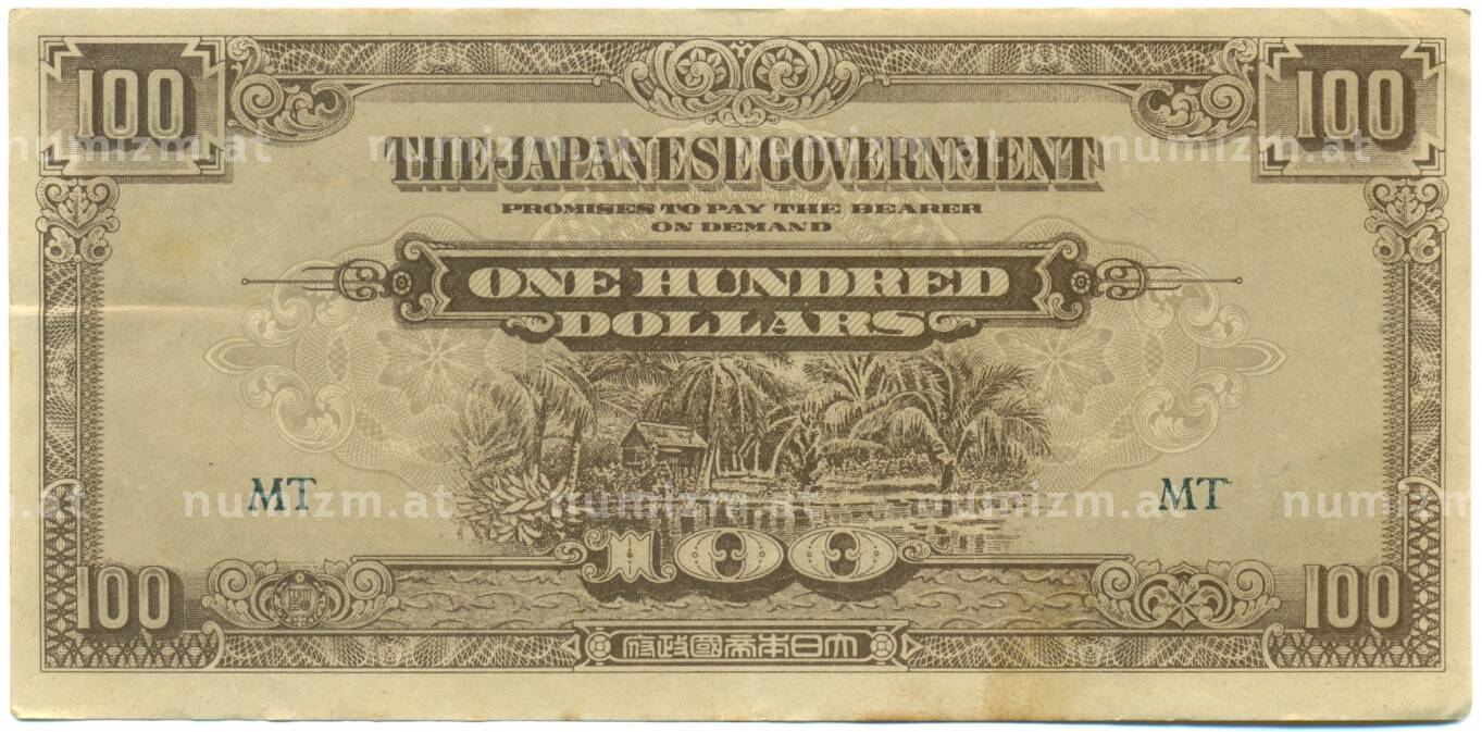 Банкнота 100 долларов 1944 года Японская оккупация Малайи (Артикул: K10-3580): подробные характеристики, качественные фотографии в высоком разрешении, низкая цена.