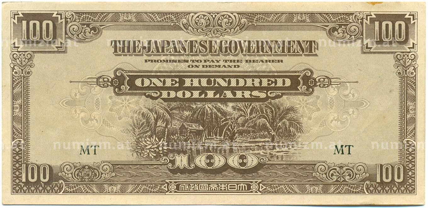 Банкнота 100 долларов 1944 года Японская оккупация Малайи (Артикул: K10-3582): подробные характеристики, качественные фотографии в высоком разрешении, низкая цена.