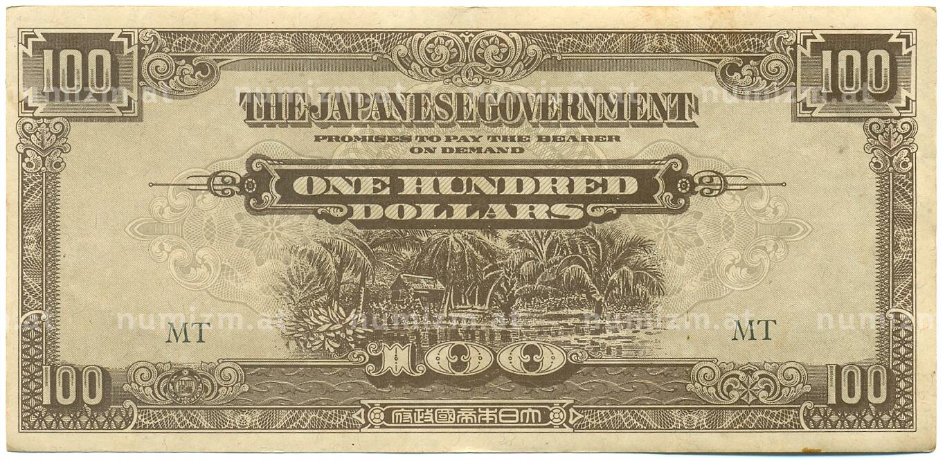 Банкнота 100 долларов 1944 года Японская оккупация Малайи (Артикул: K10-3592): подробные характеристики, качественные фотографии в высоком разрешении, низкая цена.