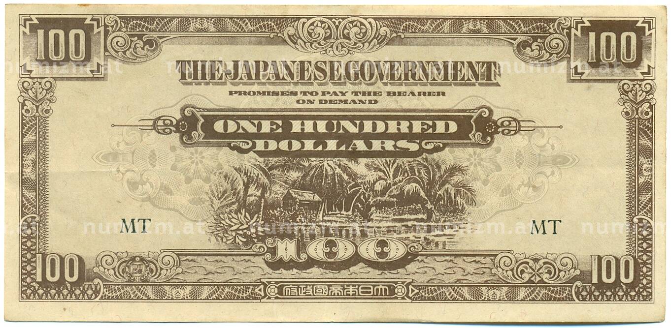 Банкнота 100 долларов 1944 года Японская оккупация Малайи (Артикул: K10-3594): подробные характеристики, качественные фотографии в высоком разрешении, низкая цена.