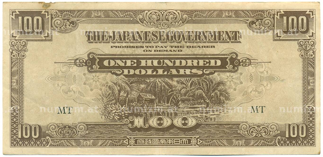 Банкнота 100 долларов 1944 года Японская оккупация Малайи (Артикул: K10-3597): подробные характеристики, качественные фотографии в высоком разрешении, низкая цена.