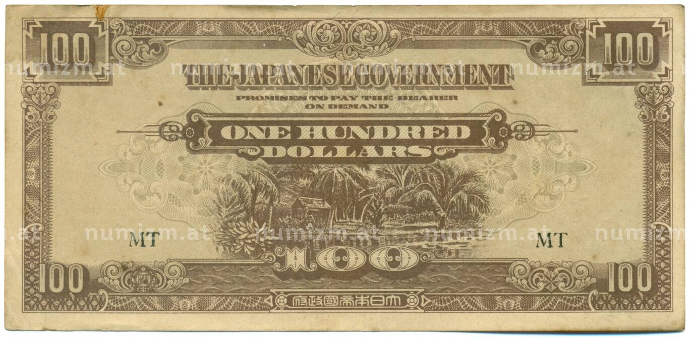 Банкнота 100 долларов 1944 года Японская оккупация Малайи (Артикул: K10-3598): подробные характеристики, качественные фотографии в высоком разрешении, низкая цена.