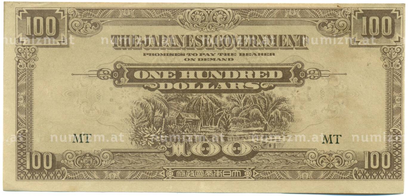 Банкнота 100 долларов 1944 года Японская оккупация Малайи (Артикул: K10-3600): подробные характеристики, качественные фотографии в высоком разрешении, низкая цена.