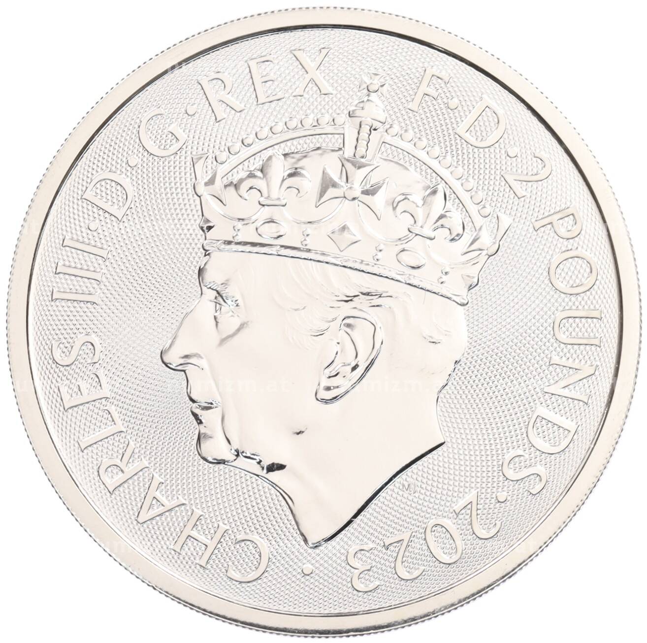 Купить 2 фунта 2023 года Великобритания «Британия» (Портрет Карла III с короной) по привлекательной цене можно в нашем интернет-магазине — Вам достаточно оформить заказ на сайте. Все монеты, представленные в каталоге, находятся в наличии на нашем складе.