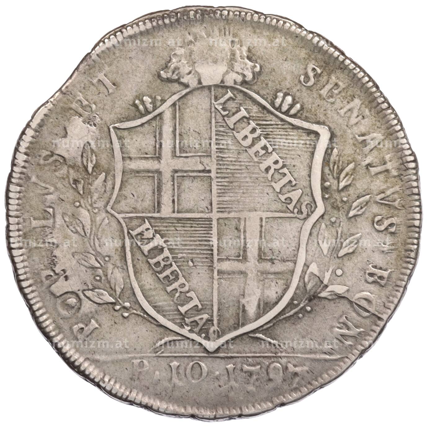 Купить 1 скудо (10 паоли) 1797 года Болонья по привлекательной цене можно в нашем интернет-магазине — Вам достаточно оформить заказ на сайте. Все монеты, представленные в каталоге, находятся в наличии на нашем складе.