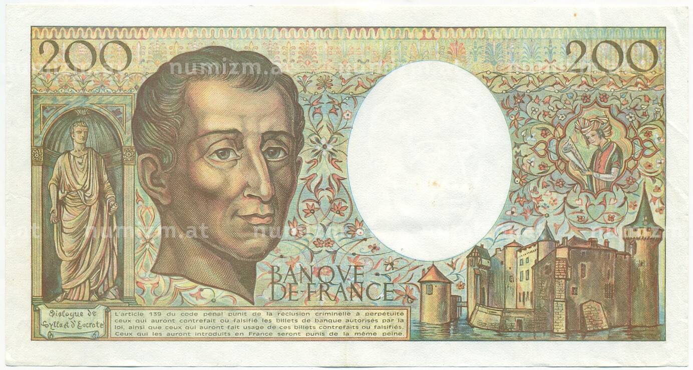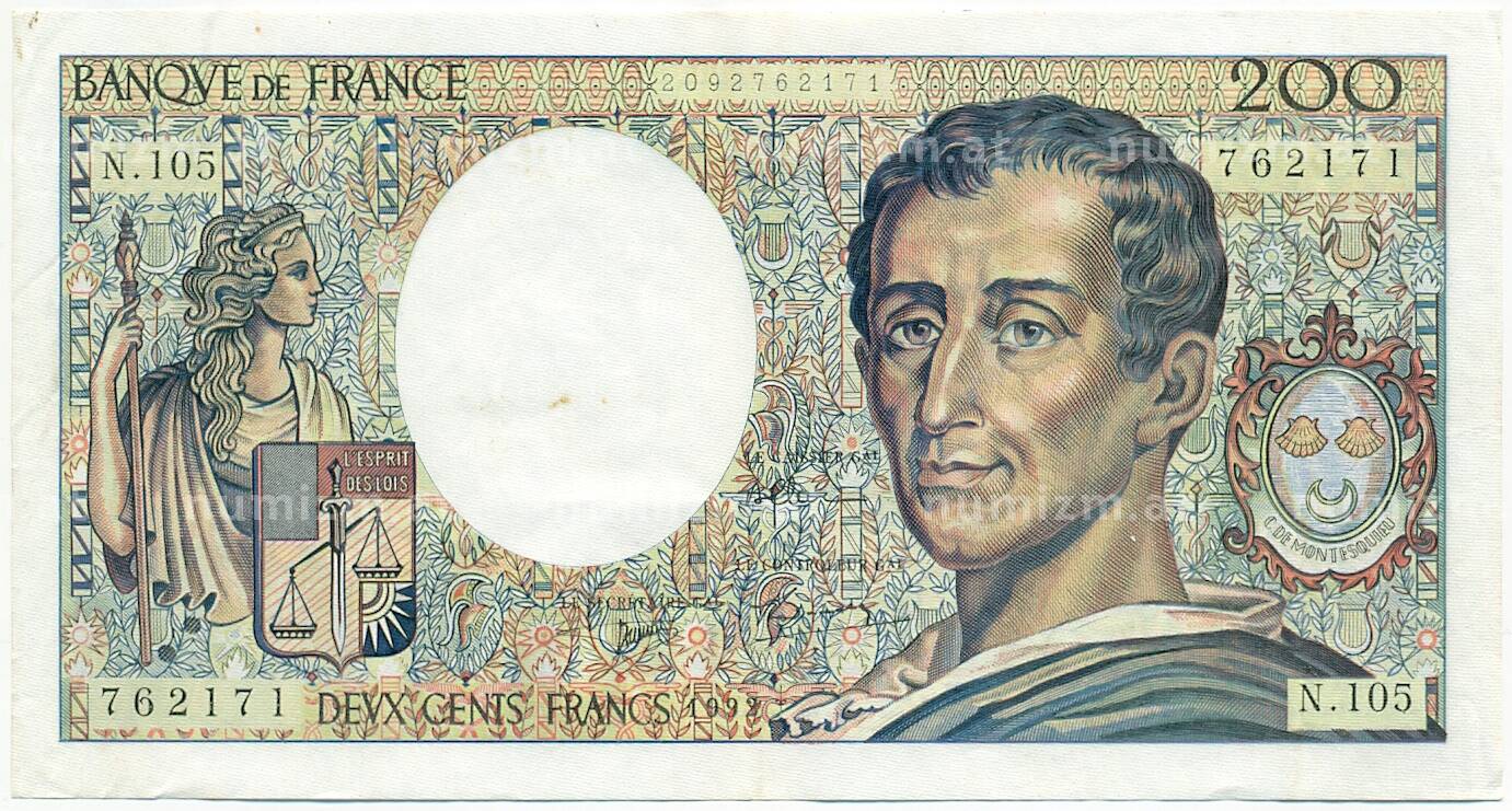 Банкнота 200 франков 1992 года Франция (Артикул: K10-3827): подробные характеристики, качественные фотографии в высоком разрешении, низкая цена.