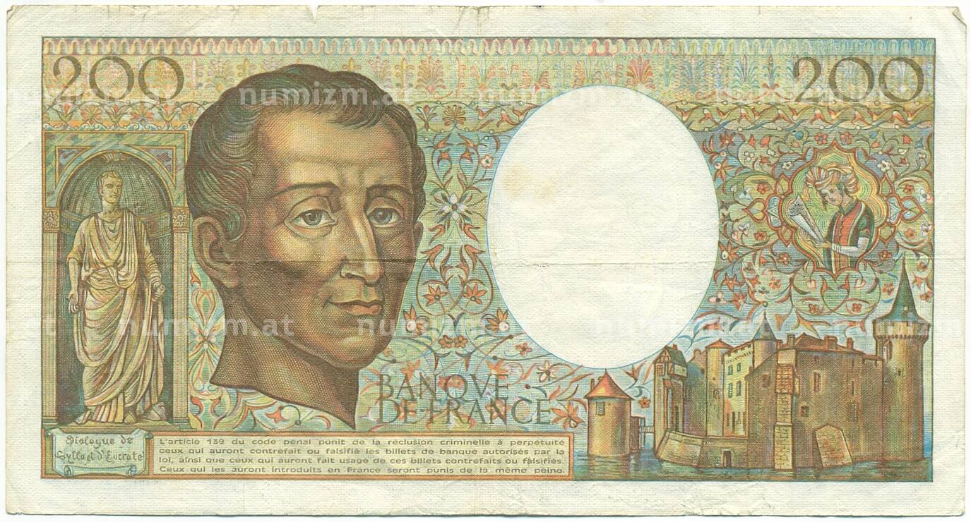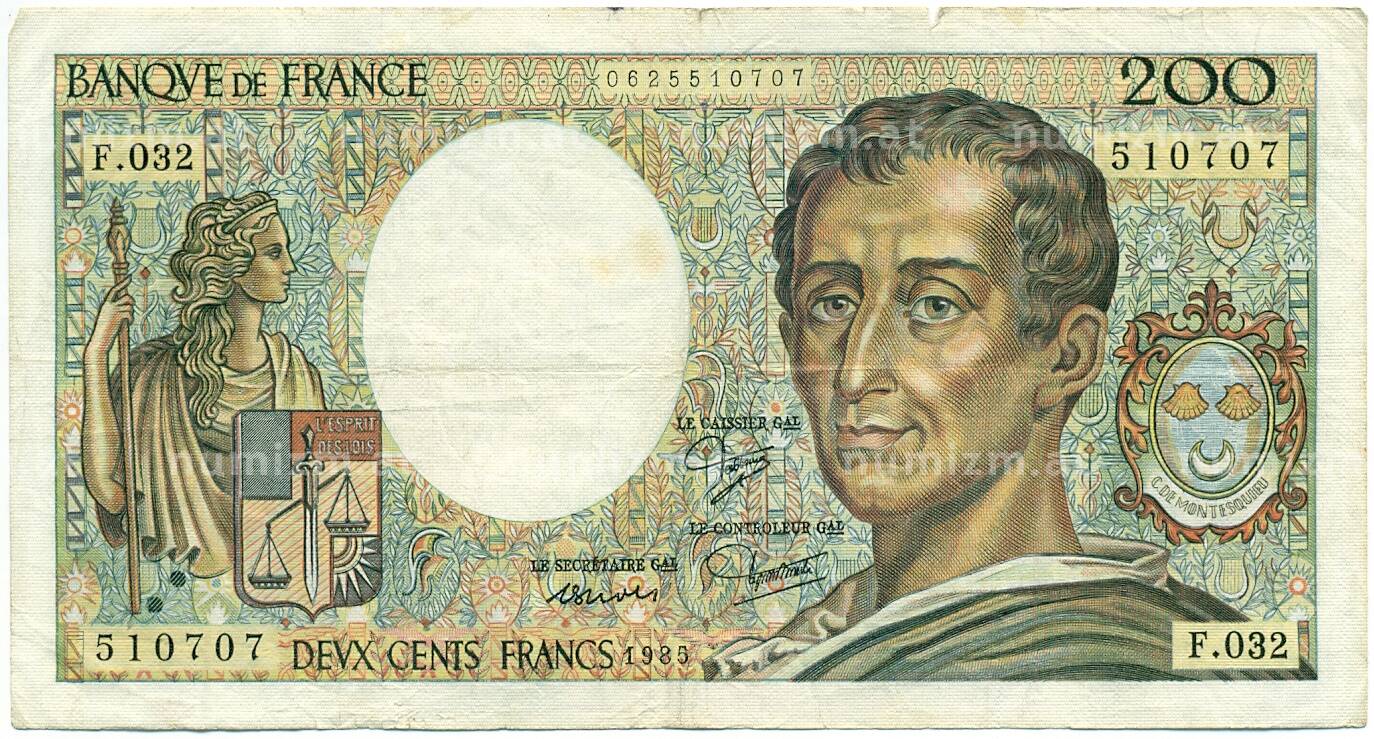 Банкнота 200 франков 1985 года Франция (Артикул: K10-3872): подробные характеристики, качественные фотографии в высоком разрешении, низкая цена.