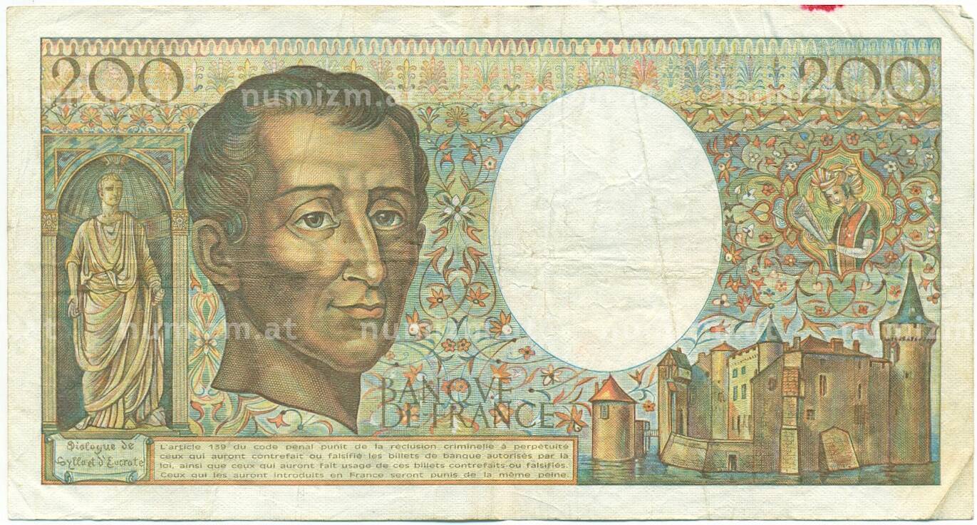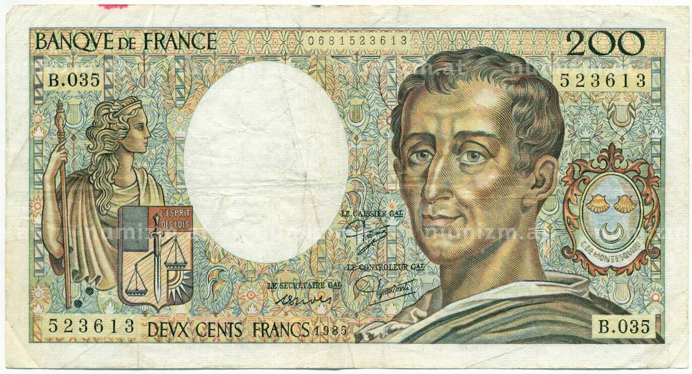 Банкнота 200 франков 1985 года Франция (Артикул: K10-3880): подробные характеристики, качественные фотографии в высоком разрешении, низкая цена.