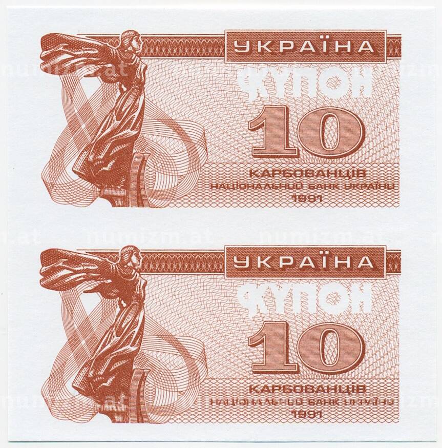 Банкнота Неразрезанная пара 10 карбованцев 1991 года Украина (ОБРАЗЕЦ) (Артикул: K10-3890): подробные характеристики, качественные фотографии в высоком разрешении, низкая цена.