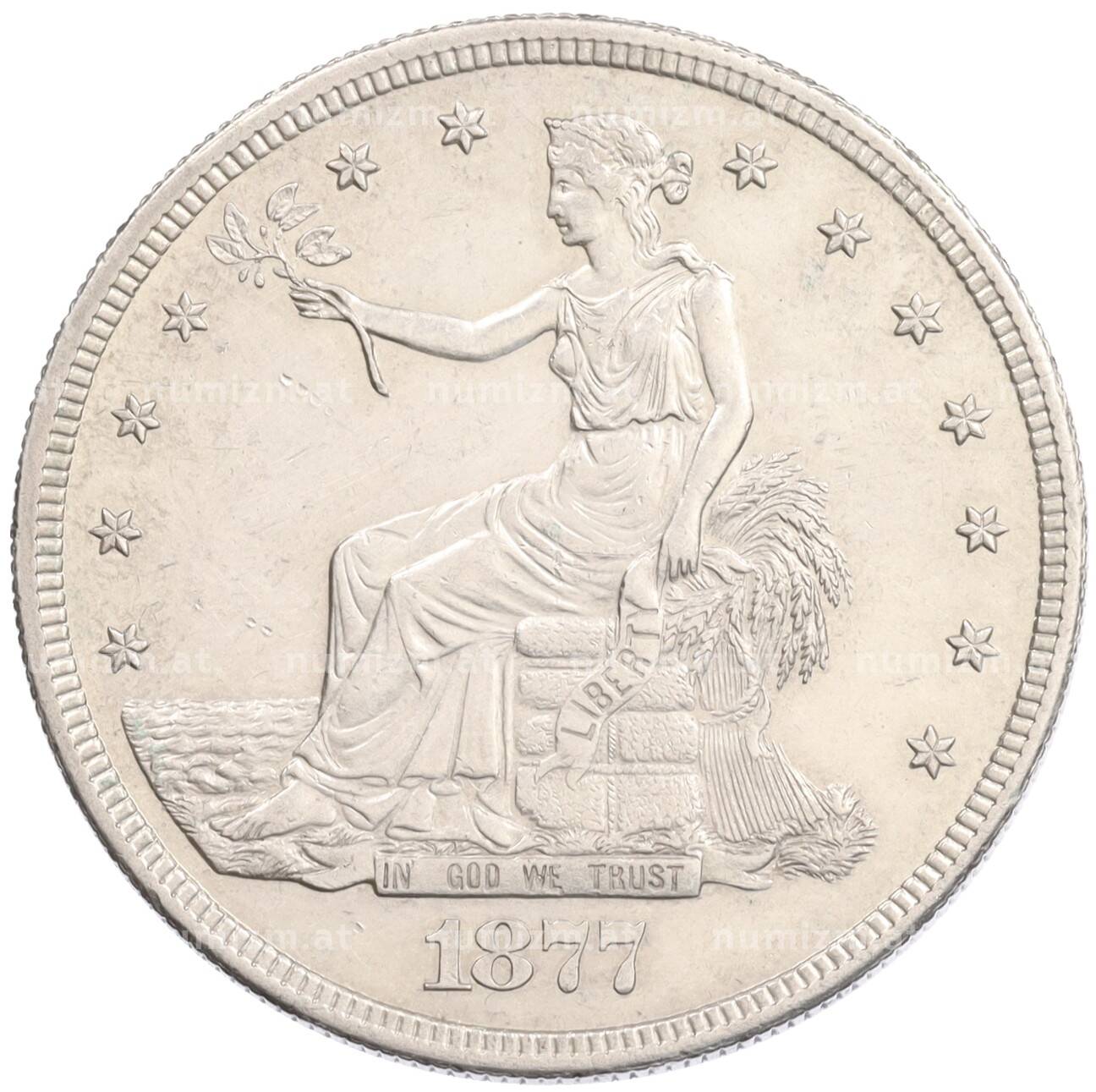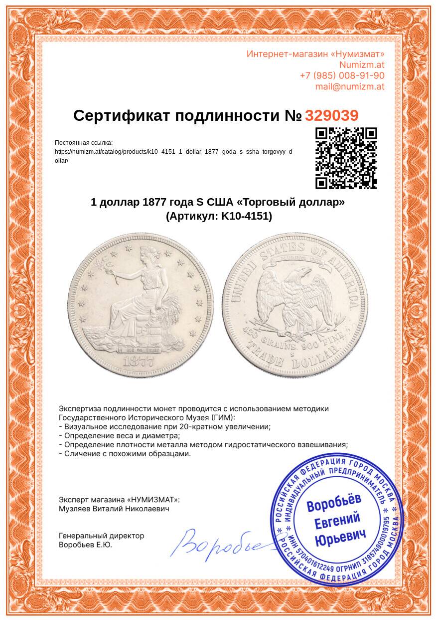 Купить 1 доллар 1877 года S США «Торговый доллар» по привлекательной цене можно в нашем интернет-магазине — Вам достаточно оформить заказ на сайте. Все монеты, представленные в каталоге, находятся в наличии на нашем складе.