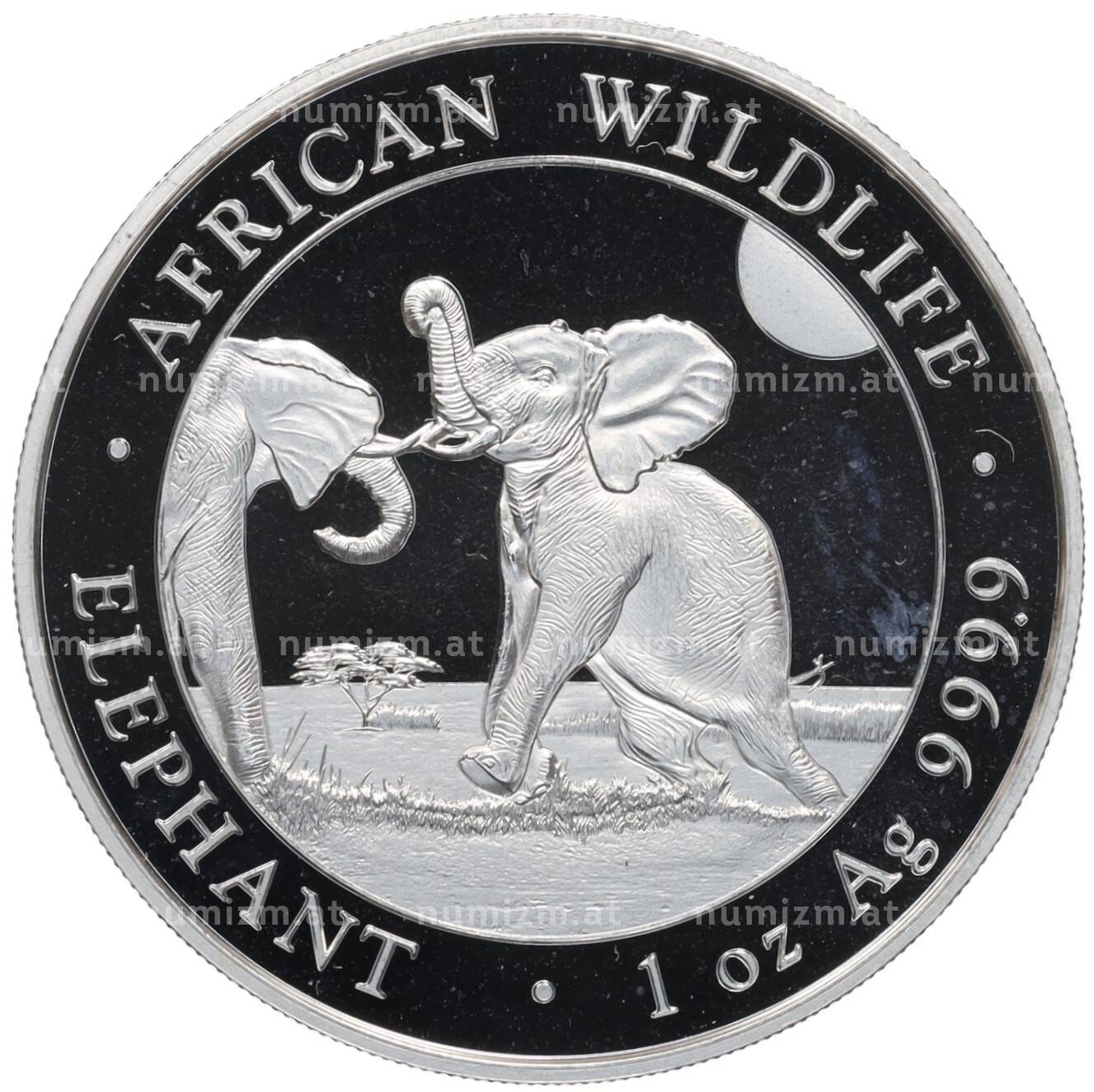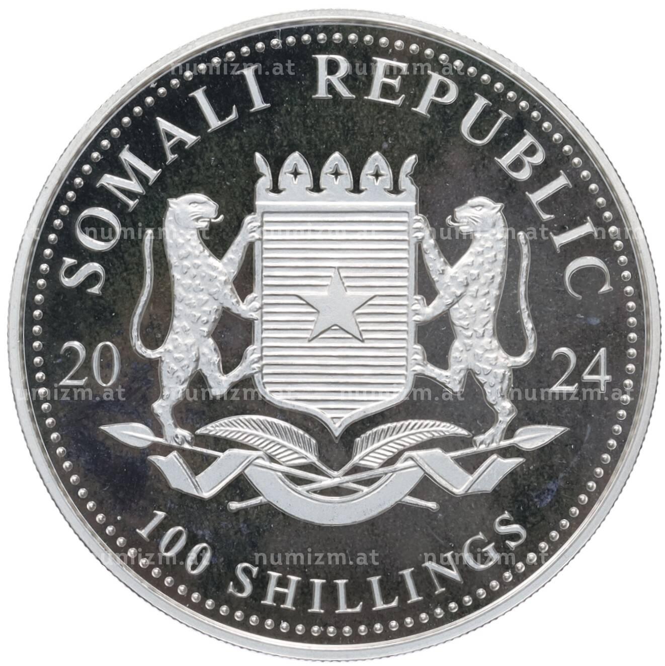 Интернет магазин «Нумизмат» предлагает приобрести 100 шиллингов 2024 года Сомали «Дикая природа Африки — Слон».