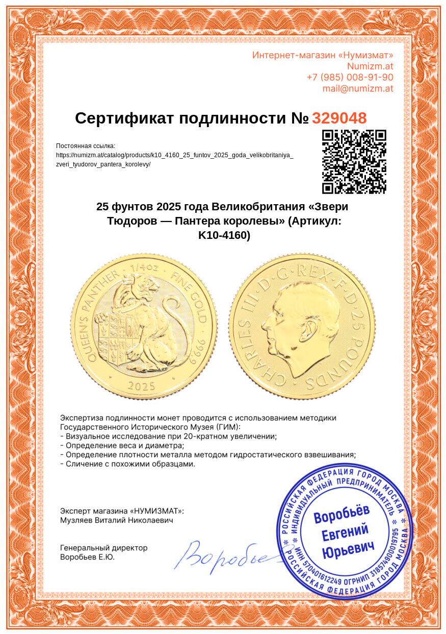 Купить 25 фунтов 2025 года Великобритания «Звери Тюдоров — Пантера королевы» по привлекательной цене можно в нашем интернет-магазине — Вам достаточно оформить заказ на сайте. Все монеты, представленные в каталоге, находятся в наличии на нашем складе.