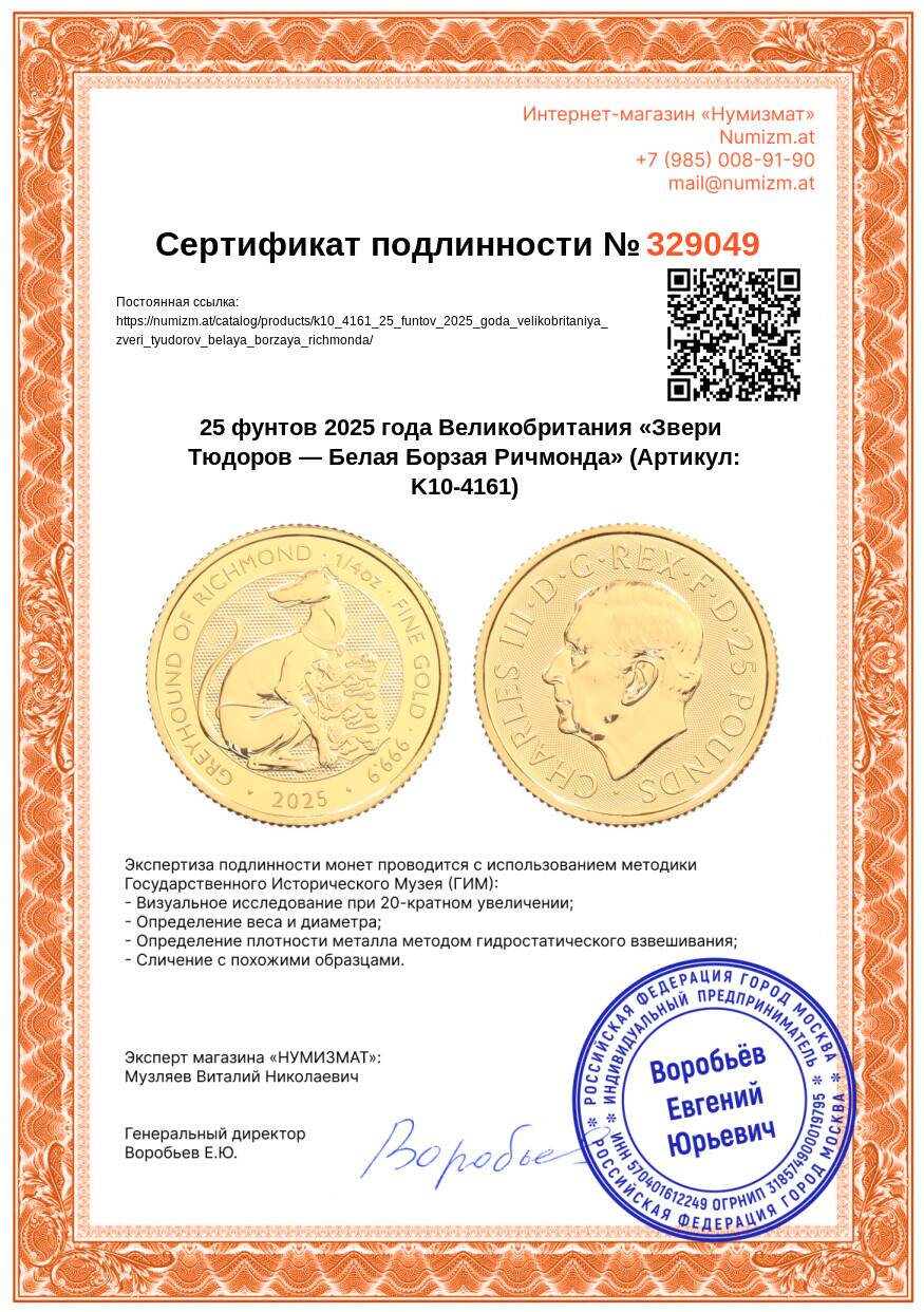 20.01.2025Интернет магазин «Нумизмат» предлагает приобрести 25 фунтов 2025 года Великобритания «Звери Тюдоров — Белая Борзая Ричмонда».