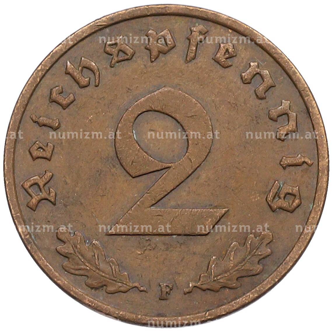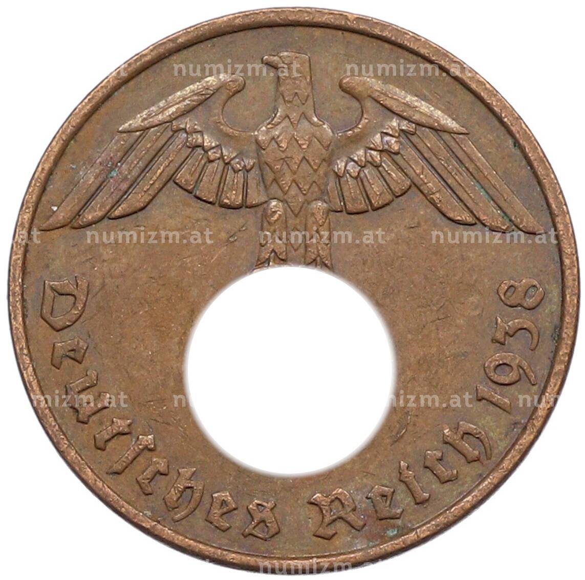 Монета 2 рейхспфеннига 1938 года F Германия (Артикул: K10-4441): подробные характеристики, качественные фотографии в высоком разрешении, низкая цена.