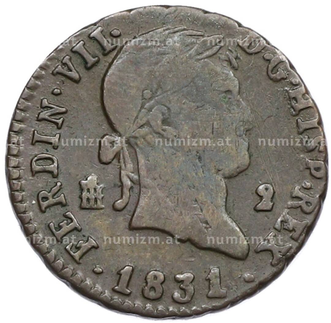 Купить 2 мараведи 1831 года Испания по привлекательной цене можно в нашем интернет-магазине — Вам достаточно оформить заказ на сайте. Все монеты, представленные в каталоге, находятся в наличии на нашем складе.