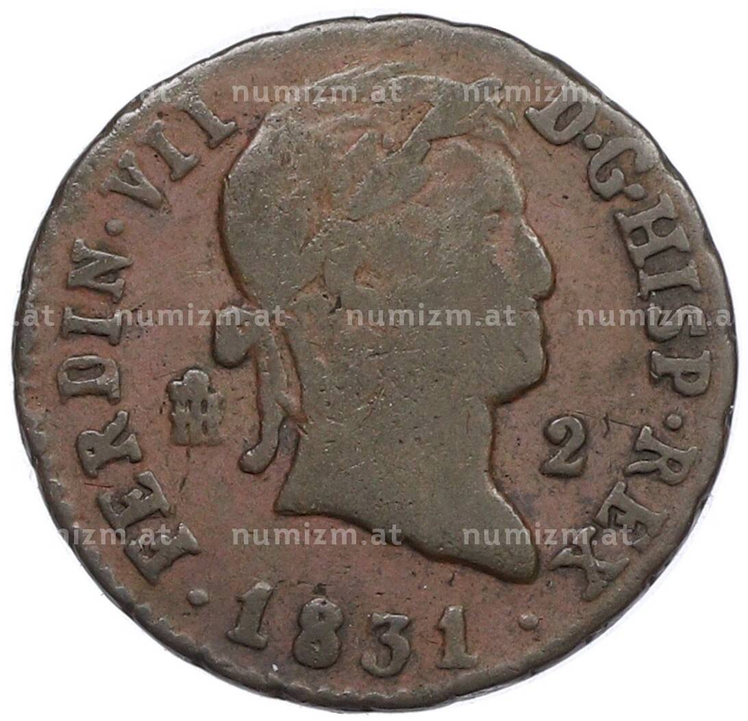 Купить 2 мараведи 1831 года Испания по привлекательной цене можно в нашем интернет-магазине — Вам достаточно оформить заказ на сайте. Все монеты, представленные в каталоге, находятся в наличии на нашем складе.