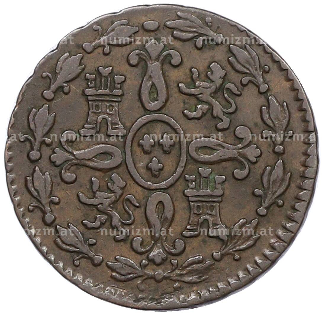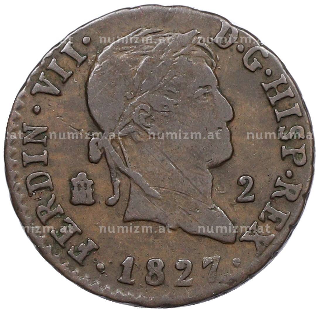 Купить 2 мараведи 1827 года Испания по привлекательной цене можно в нашем интернет-магазине — Вам достаточно оформить заказ на сайте. Все монеты, представленные в каталоге, находятся в наличии на нашем складе.