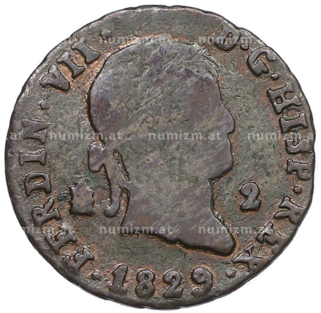 Купить 2 мараведи 1829 года Испания по привлекательной цене можно в нашем интернет-магазине — Вам достаточно оформить заказ на сайте. Все монеты, представленные в каталоге, находятся в наличии на нашем складе.