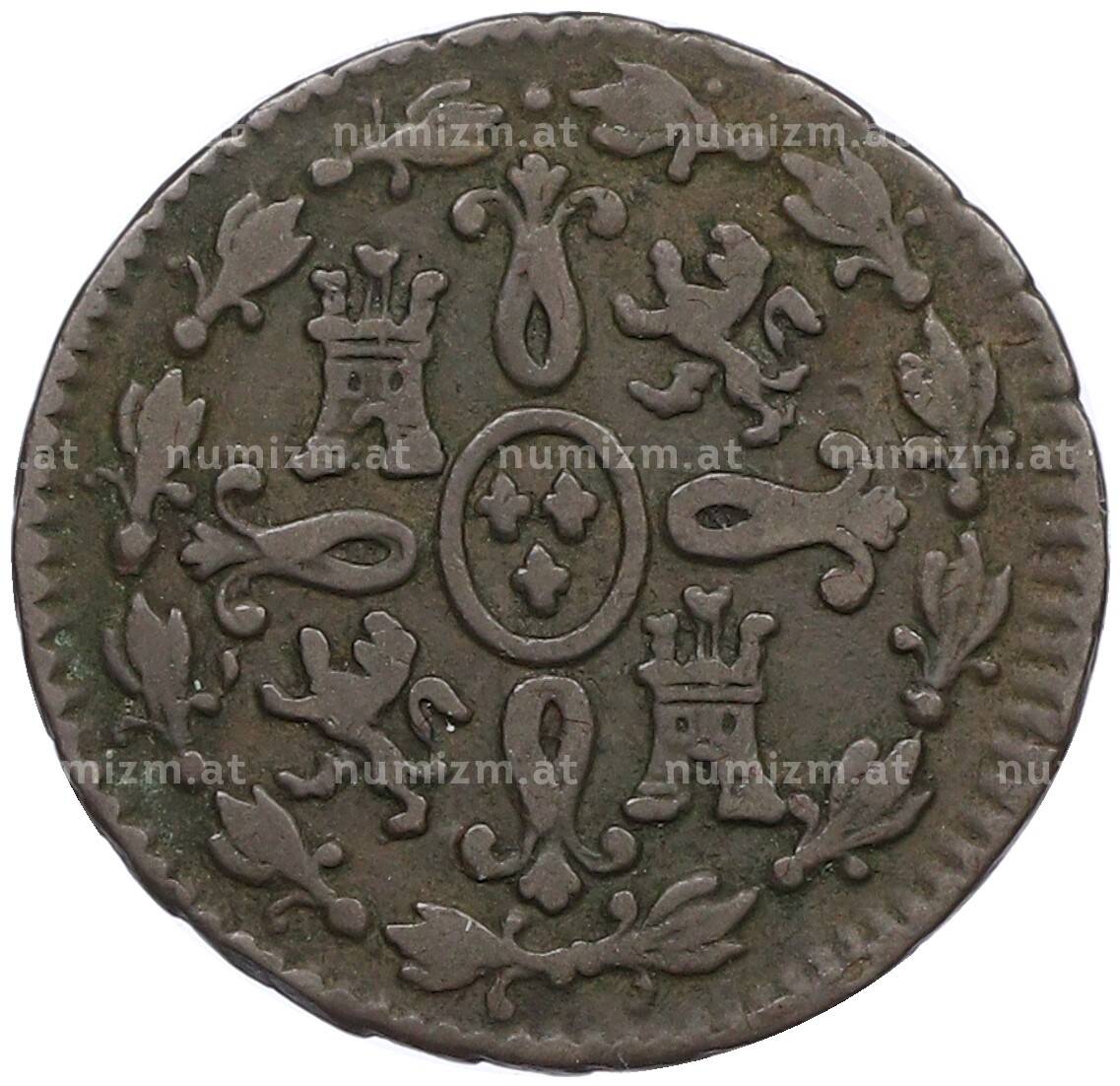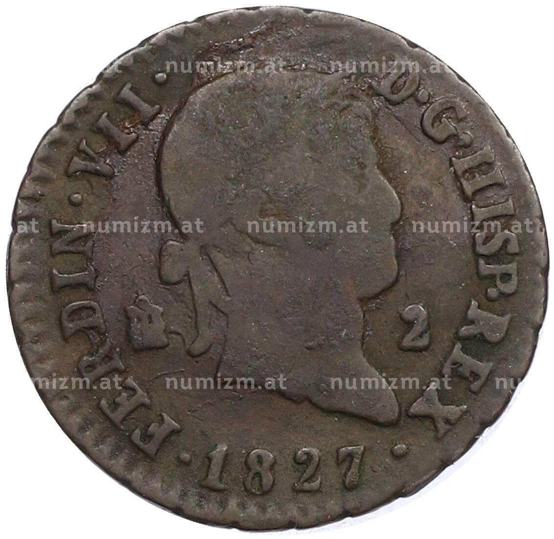 Купить 2 мараведи 1827 года Испания по привлекательной цене можно в нашем интернет-магазине — Вам достаточно оформить заказ на сайте. Все монеты, представленные в каталоге, находятся в наличии на нашем складе.