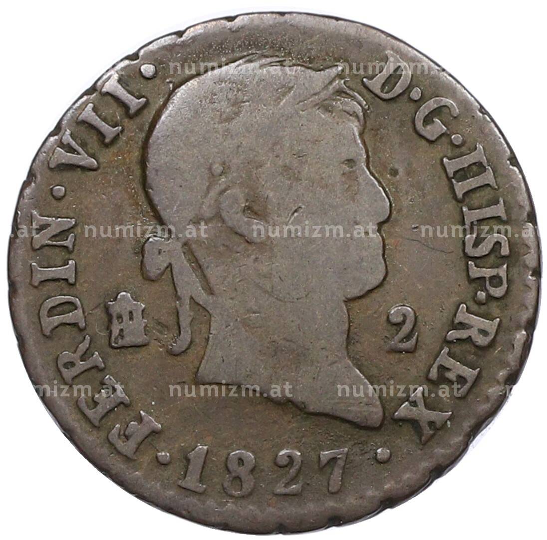 Купить 2 мараведи 1827 года Испания по привлекательной цене можно в нашем интернет-магазине — Вам достаточно оформить заказ на сайте. Все монеты, представленные в каталоге, находятся в наличии на нашем складе.
