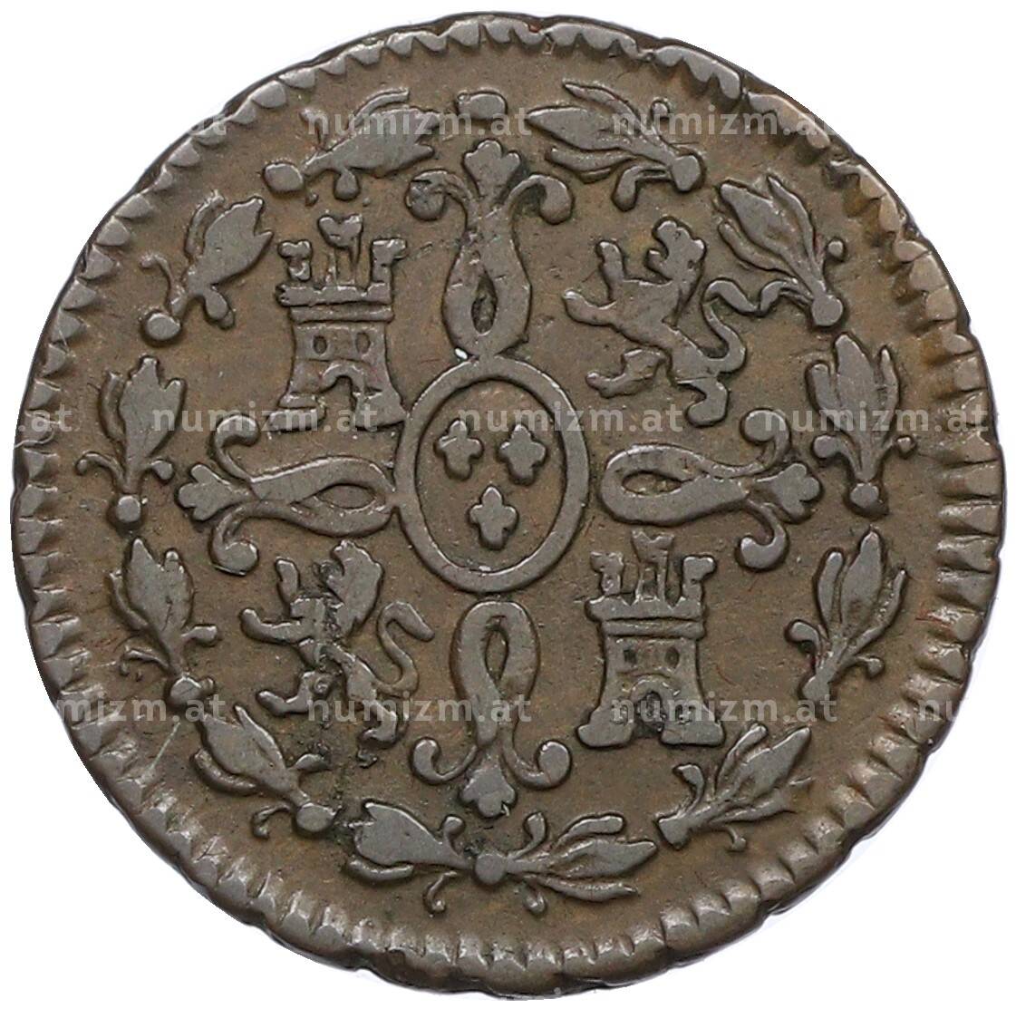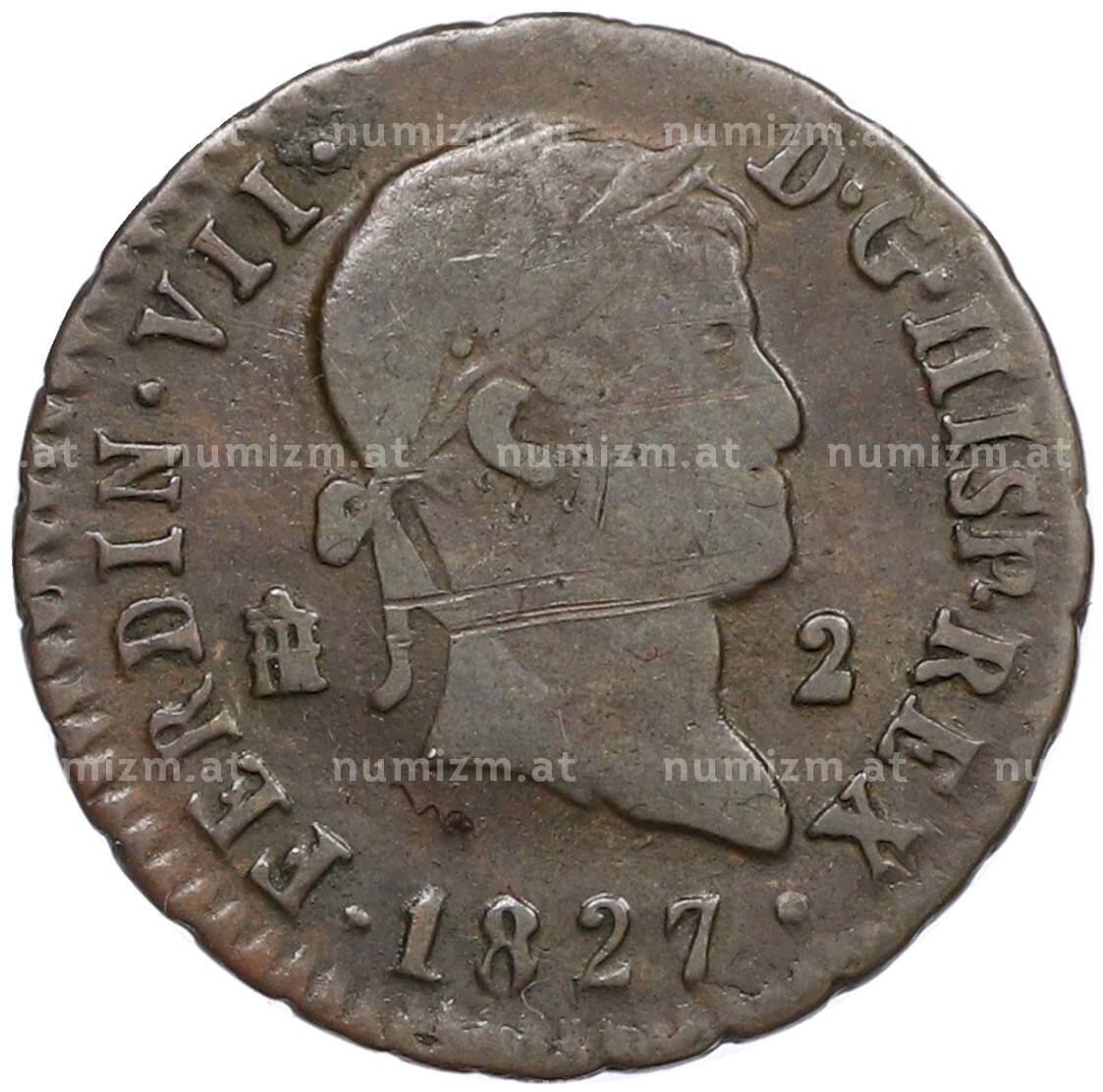 Купить 2 мараведи 1827 года Испания по привлекательной цене можно в нашем интернет-магазине — Вам достаточно оформить заказ на сайте. Все монеты, представленные в каталоге, находятся в наличии на нашем складе.