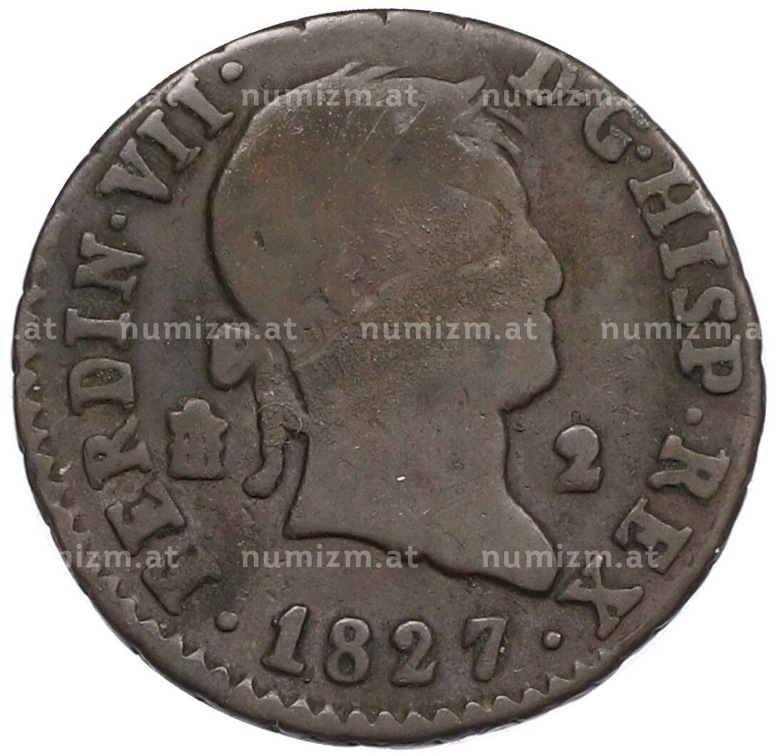 Купить 2 мараведи 1827 года Испания по привлекательной цене можно в нашем интернет-магазине — Вам достаточно оформить заказ на сайте. Все монеты, представленные в каталоге, находятся в наличии на нашем складе.