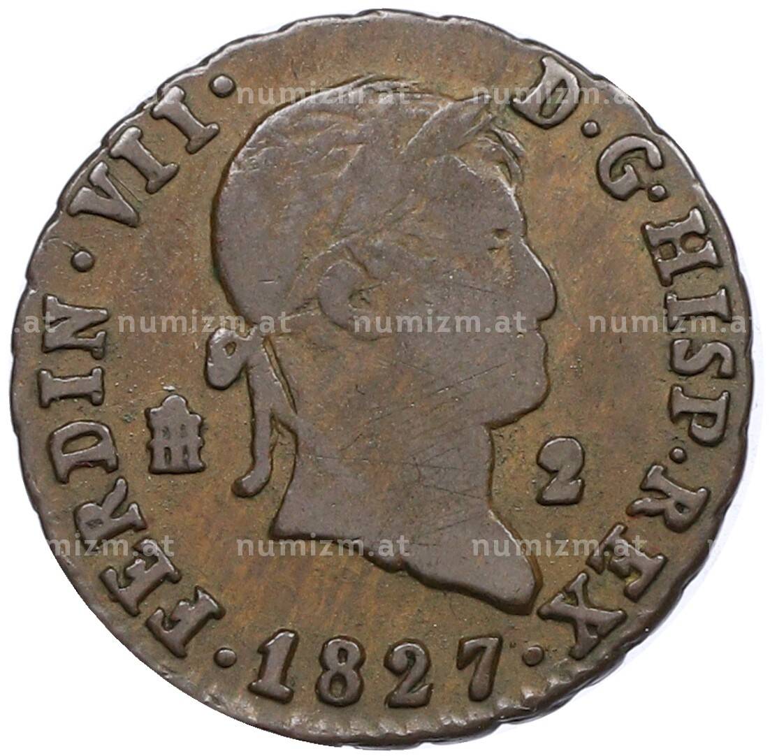 Купить 2 мараведи 1827 года Испания по привлекательной цене можно в нашем интернет-магазине — Вам достаточно оформить заказ на сайте. Все монеты, представленные в каталоге, находятся в наличии на нашем складе.