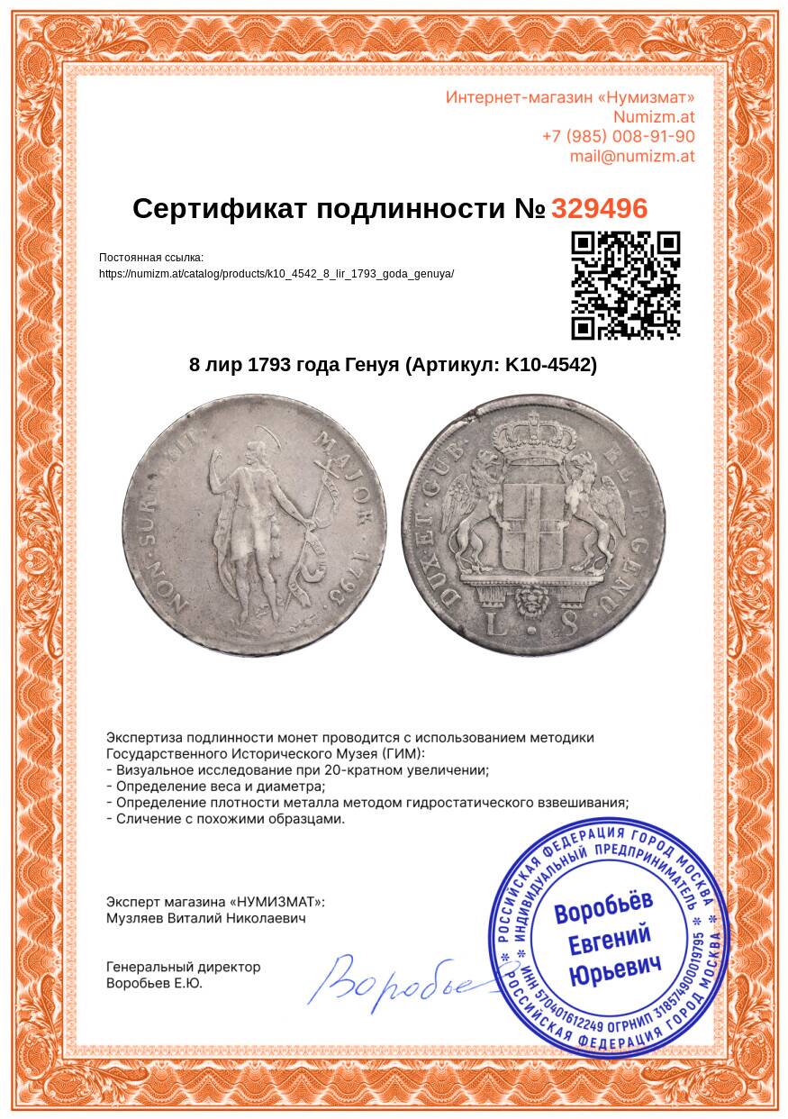 Купить 8 лир 1793 года Генуя по привлекательной цене можно в нашем интернет-магазине — Вам достаточно оформить заказ на сайте. Все монеты, представленные в каталоге, находятся в наличии на нашем складе.