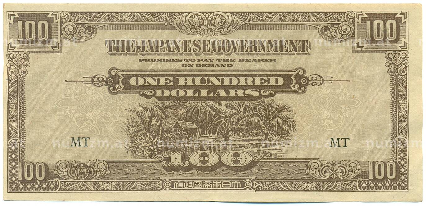 Банкнота 100 долларов 1944 года Японская оккупация Малайи (Артикул: K10-4564): подробные характеристики, качественные фотографии в высоком разрешении, низкая цена.