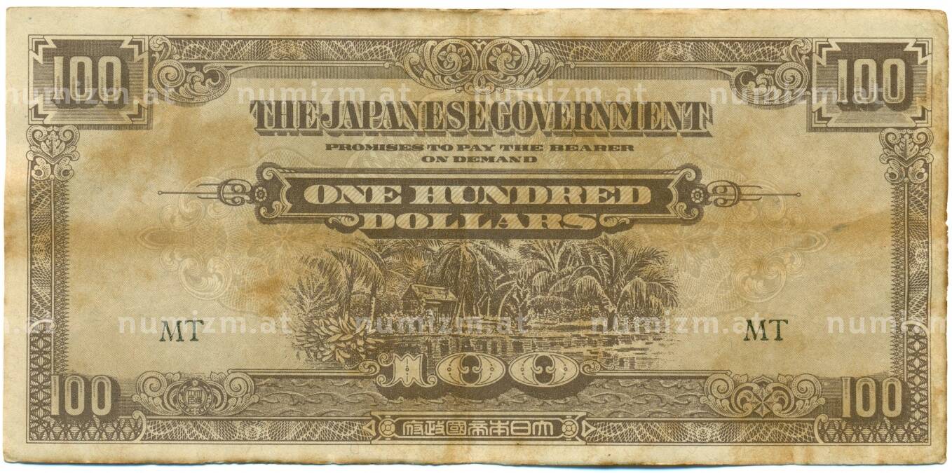 Банкнота 100 долларов 1944 года Японская оккупация Малайи (Артикул: K10-4568): подробные характеристики, качественные фотографии в высоком разрешении, низкая цена.