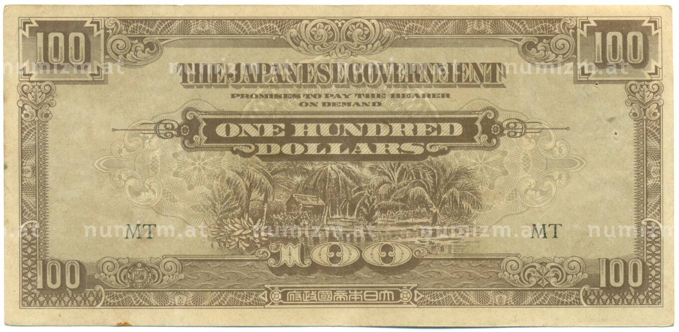 Банкнота 100 долларов 1944 года Японская оккупация Малайи (Артикул: K10-4578): подробные характеристики, качественные фотографии в высоком разрешении, низкая цена.
