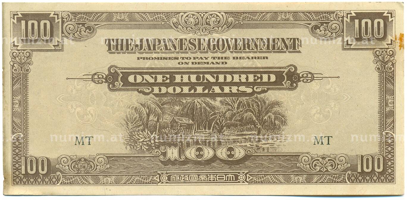 Банкнота 100 долларов 1944 года Японская оккупация Малайи (Артикул: K10-4579): подробные характеристики, качественные фотографии в высоком разрешении, низкая цена.