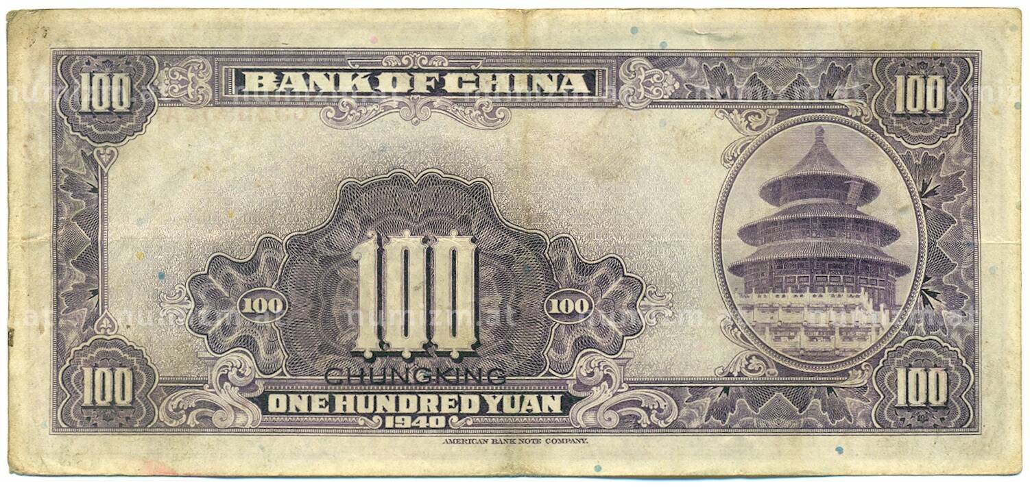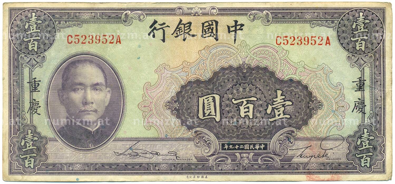 Банкнота 100 юаней 1940 года Китай (Артикул: K10-4592): подробные характеристики, качественные фотографии в высоком разрешении, низкая цена.