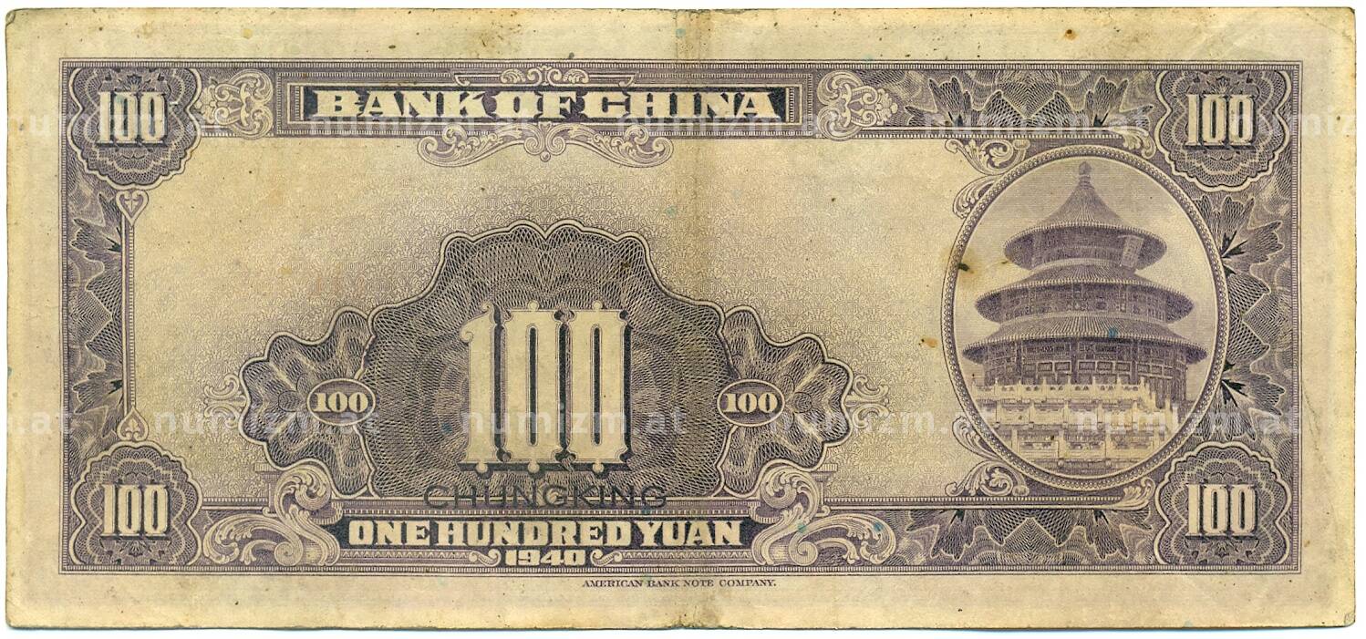 Банкнота 100 юаней 1940 года Китай (Артикул: K10-4595): подробные характеристики, качественные фотографии в высоком разрешении, низкая цена.