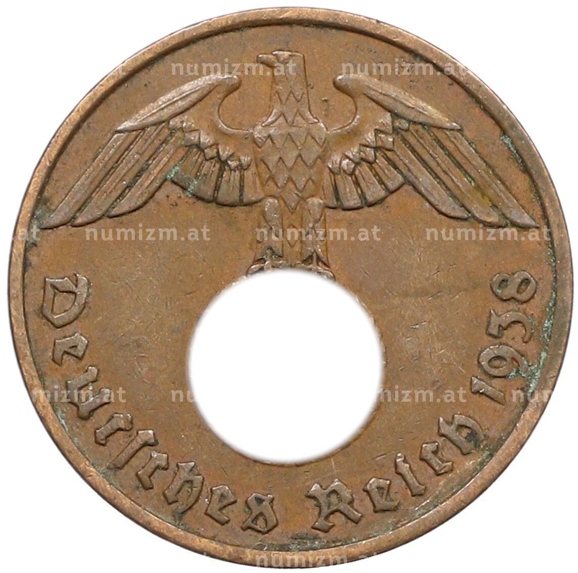 Монета 2 рейхспфеннига 1938 года F Германия (Артикул: K10-4618): подробные характеристики, качественные фотографии в высоком разрешении, низкая цена.