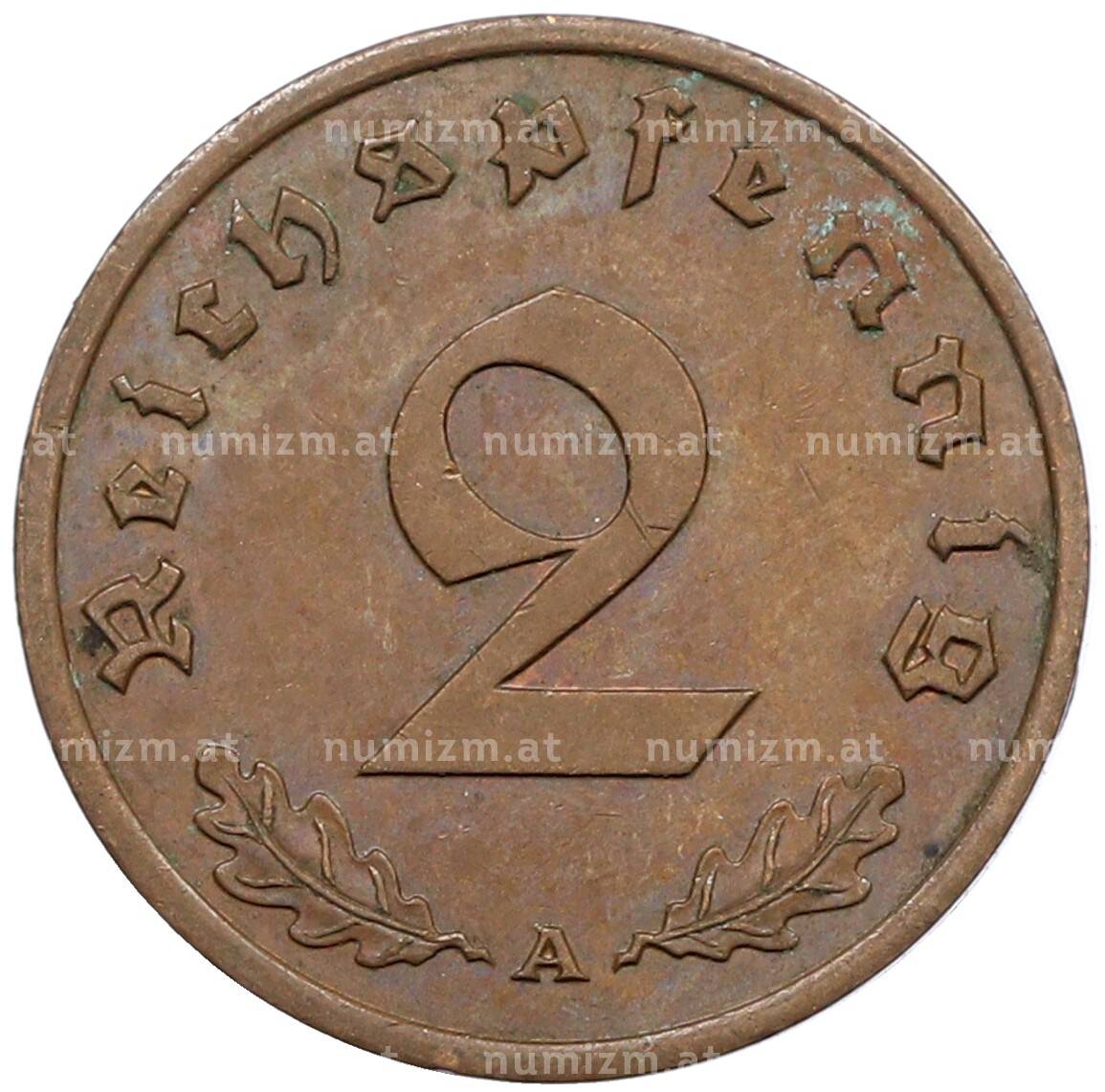 Монета 2 рейхспфеннига 1940 года A Германия (Артикул: K10-4634): подробные характеристики, качественные фотографии в высоком разрешении, низкая цена.