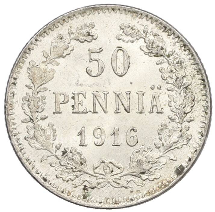 Монета 50 пенни 1916 года Русская Финляндия (Артикул: K10-4794): подробные характеристики, качественные фотографии в высоком разрешении, низкая цена.