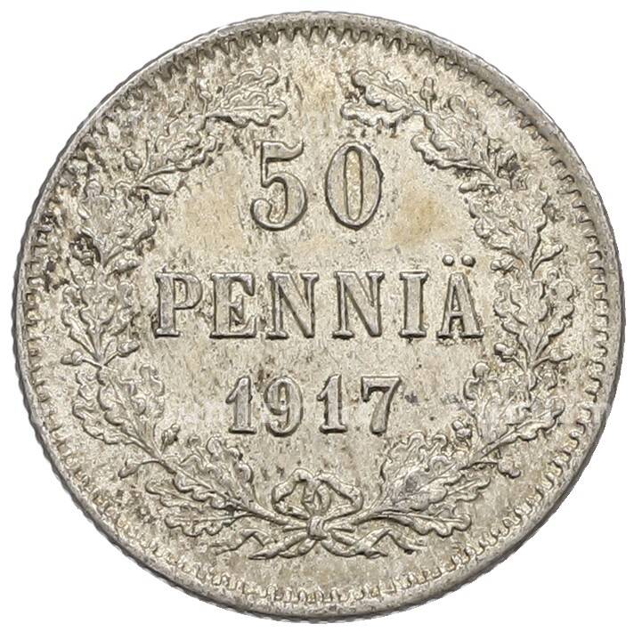 Монета 50 пенни 1917 года Русская Финляндия (Орел с коронами) (Артикул: K10-4797): подробные характеристики, качественные фотографии в высоком разрешении, низкая цена.