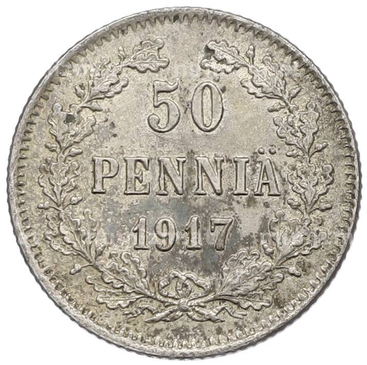 Монета 50 пенни 1917 года Русская Финляндия — Орел без корон (Временное правительство) [Артикул: K10-4801]