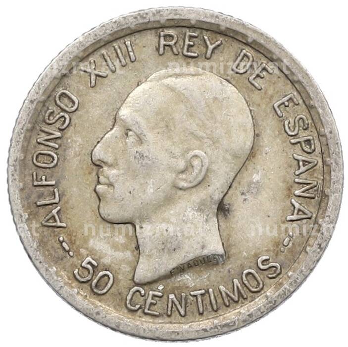 Монета 50 сентимо 1926 года Испания (Артикул: K10-4813): подробные характеристики, качественные фотографии в высоком разрешении, низкая цена.