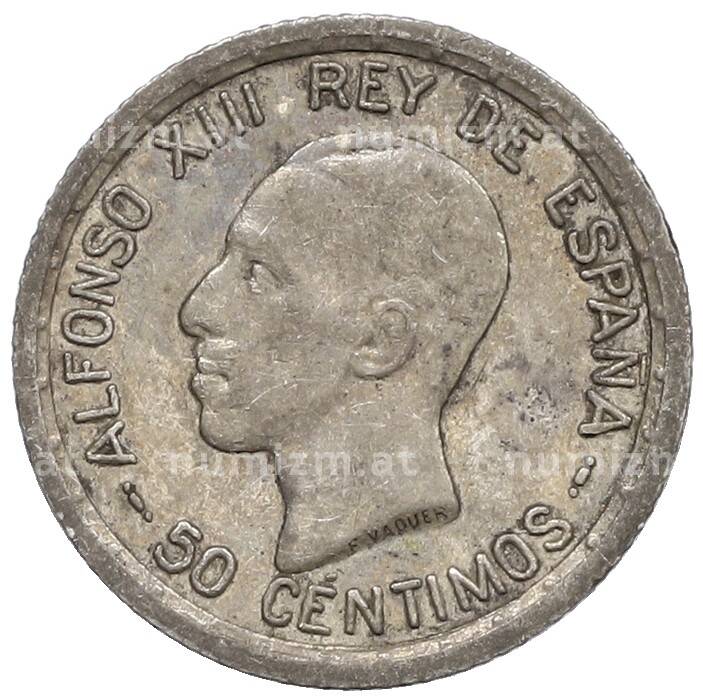 Монета 50 сентимо 1926 года Испания (Артикул: K10-4817): подробные характеристики, качественные фотографии в высоком разрешении, низкая цена.