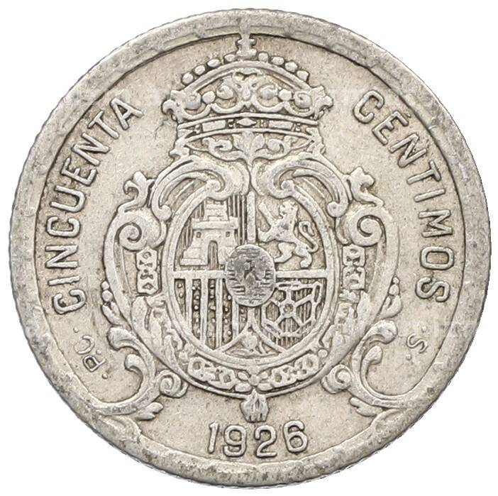 Монета 50 сентимо 1926 года Испания (Артикул: K10-4833): подробные характеристики, качественные фотографии в высоком разрешении, низкая цена.