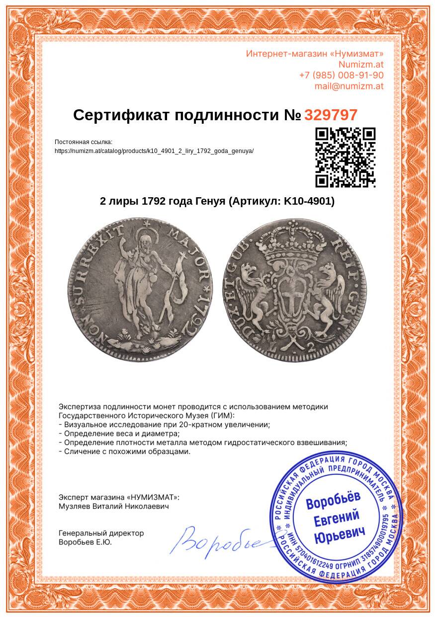 Купить 2 лиры 1792 года Генуя по привлекательной цене можно в нашем интернет-магазине — Вам достаточно оформить заказ на сайте. Все монеты, представленные в каталоге, находятся в наличии на нашем складе.